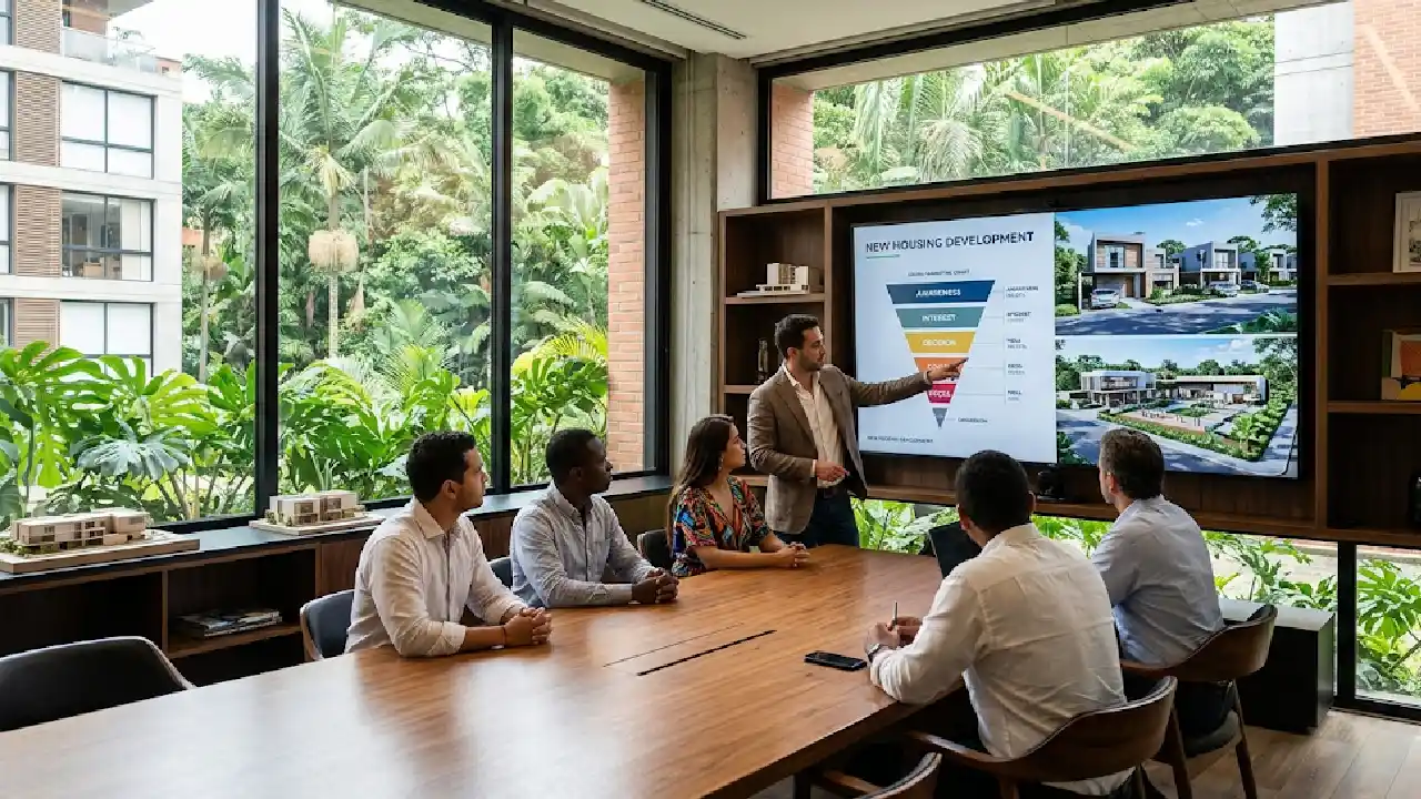 Una agencia de marketing inmobiliario es una empresa especializada en diseñar y ejecutar estrategias digitales y de comunicación orientadas exclusivamente al sector de bienes raíces. Su función central es aumentar las ventas de proyectos inmobiliarios generando demanda cualificada, visibilidad digital y captación de compradores potenciales para constructoras, inmobiliarias, promotores y agentes del mercado.